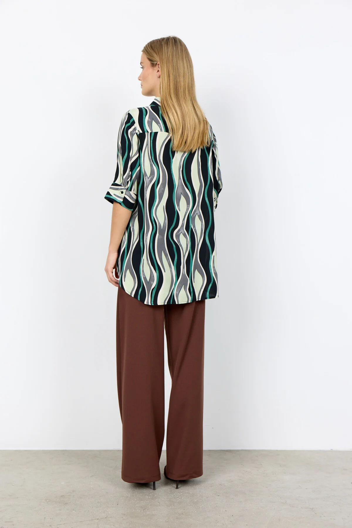 SC-CAMMI 2 features a stylish shirt crafted from 100% LENZING™ ECOVERO™ Viscose. This shirt includes a classic collar, button-down front, and eye-catching wave print, with a slightly longer back hem for added flair. Pair it with tailored trousers or denim for a refined look.