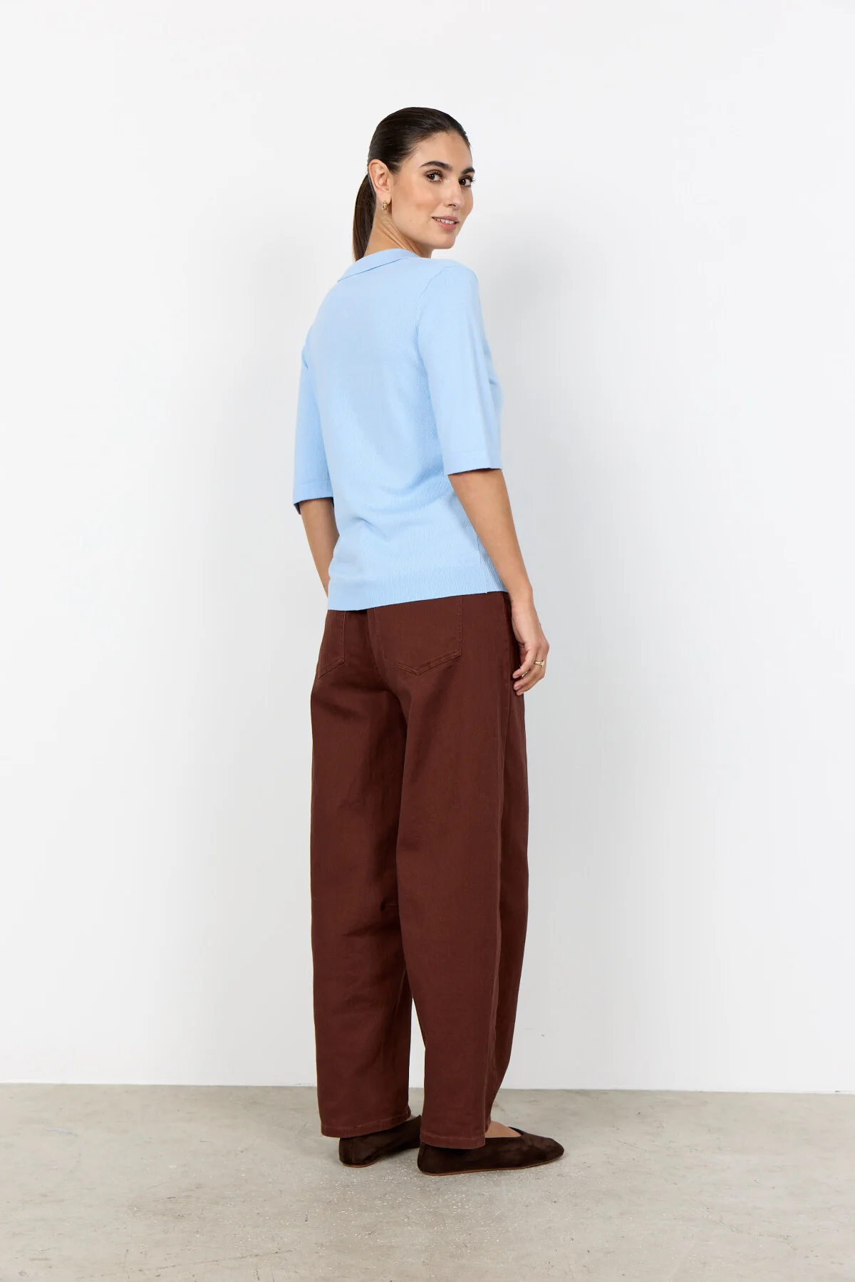 SC-DOLLIE 817 is a Pullover made of 75% Viscose, 25% Nylon. It features a sophisticated collar with short sleeves and a clean, smooth texture. Pair it with tailored trousers or a sleek skirt for an elegant look.