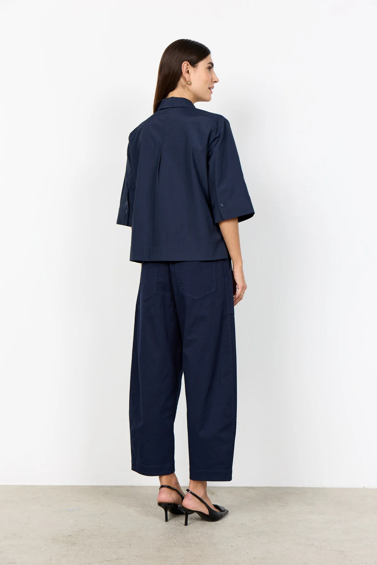 SC-NETTI 118 Shirt is crafted with 53% recycled polyester and 47% organic cotton. The shirt features a classic collar, concealed buttons, and a straight hem, along with short wide sleeves. Pair it with tailored trousers or a casual skirt for an elegant style.